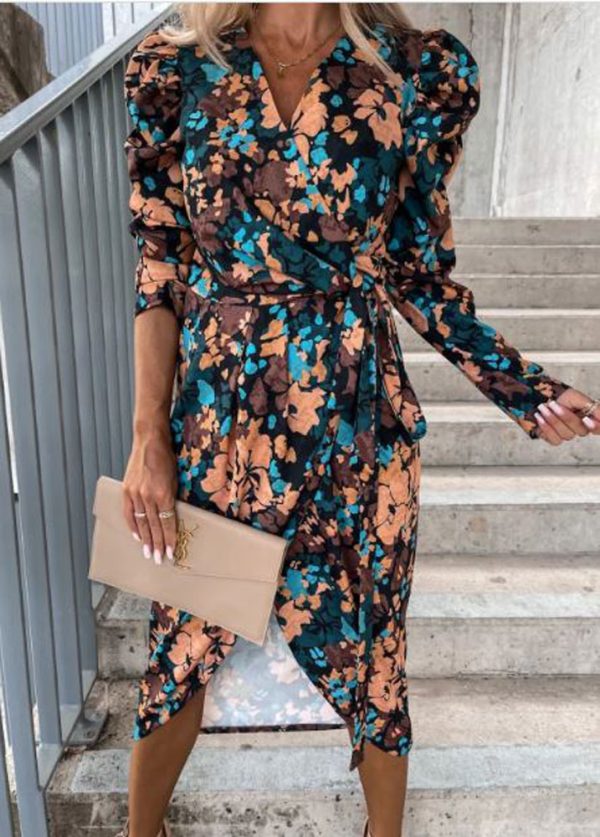 Lucy Long Puff Sleeve Split Leg Midi Dress Blue