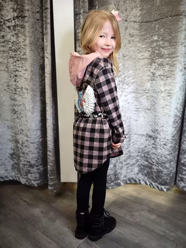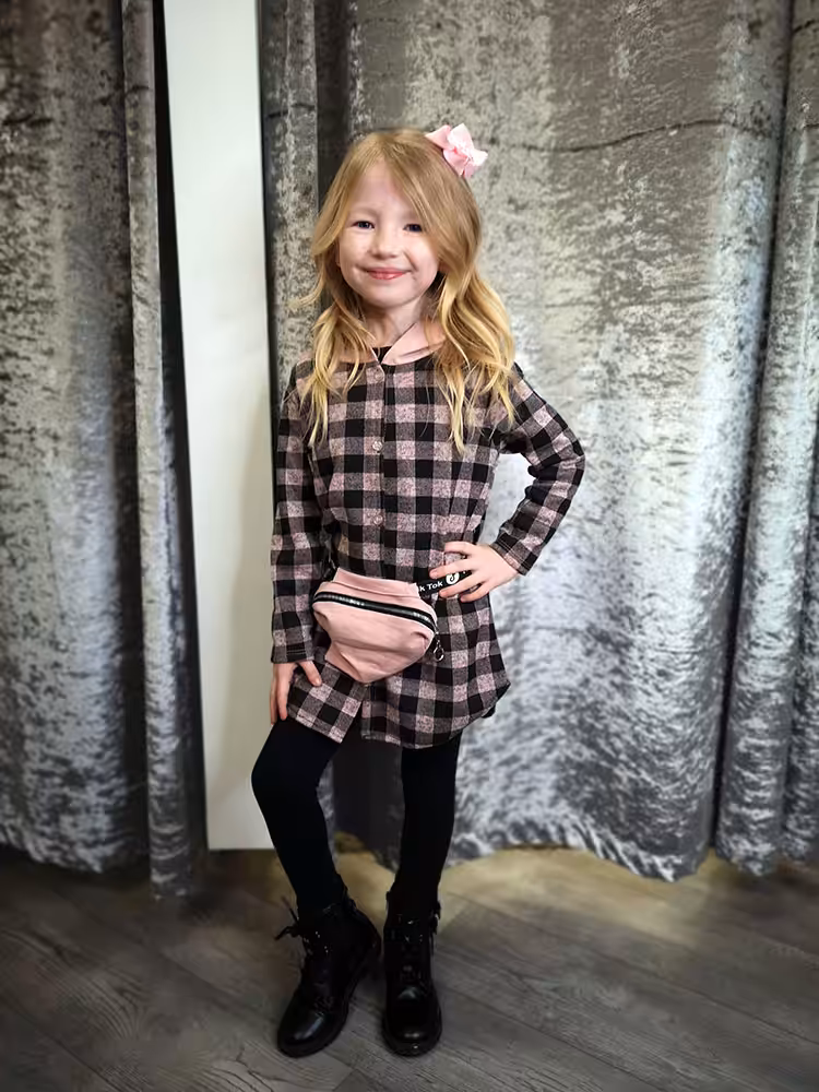 Model is 5 years old wearing age 4