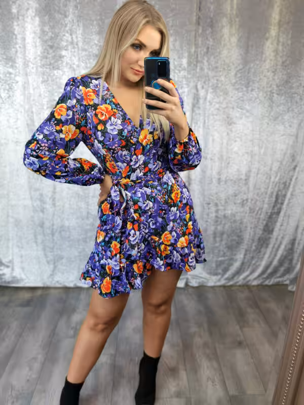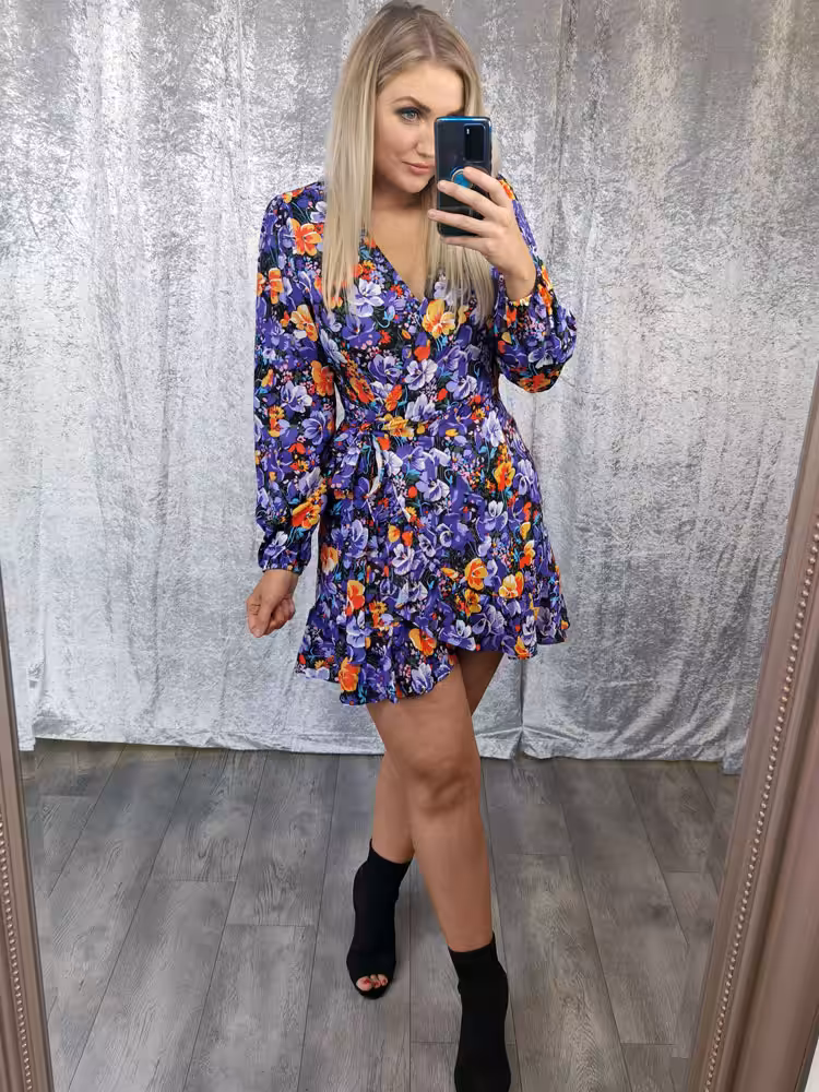 Purple with mix floral prints and orange tones