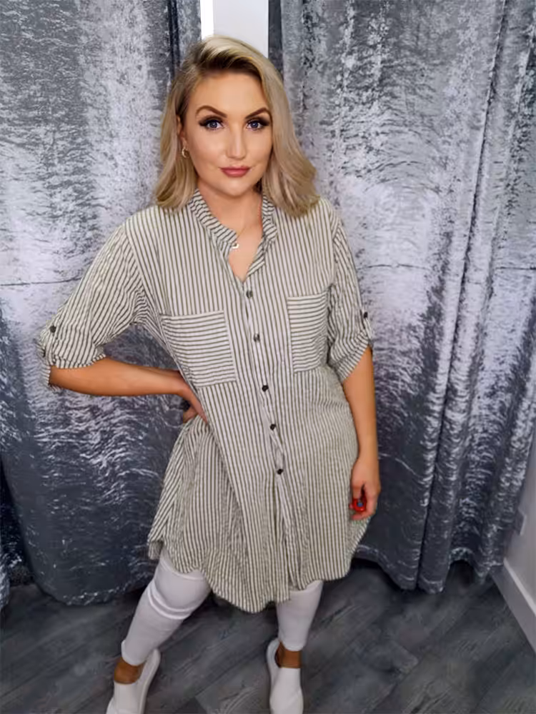 One Size fits 10-14 Khaki Green and White Stripes