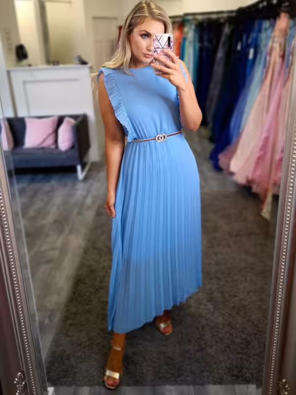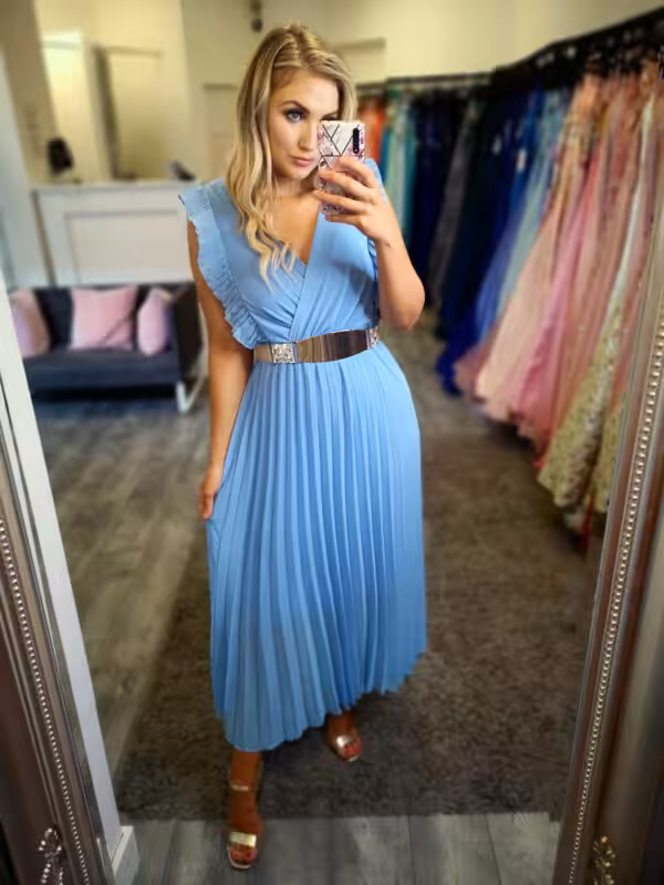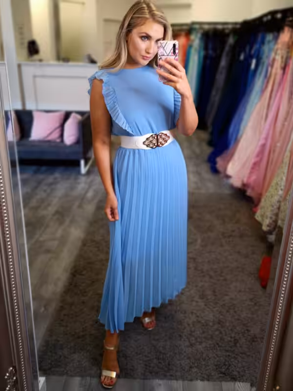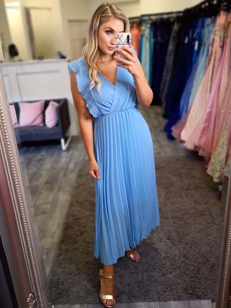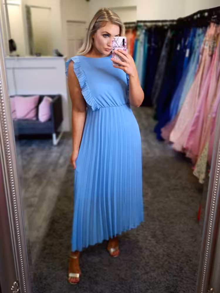Hana Pleated Midi Dress Blue