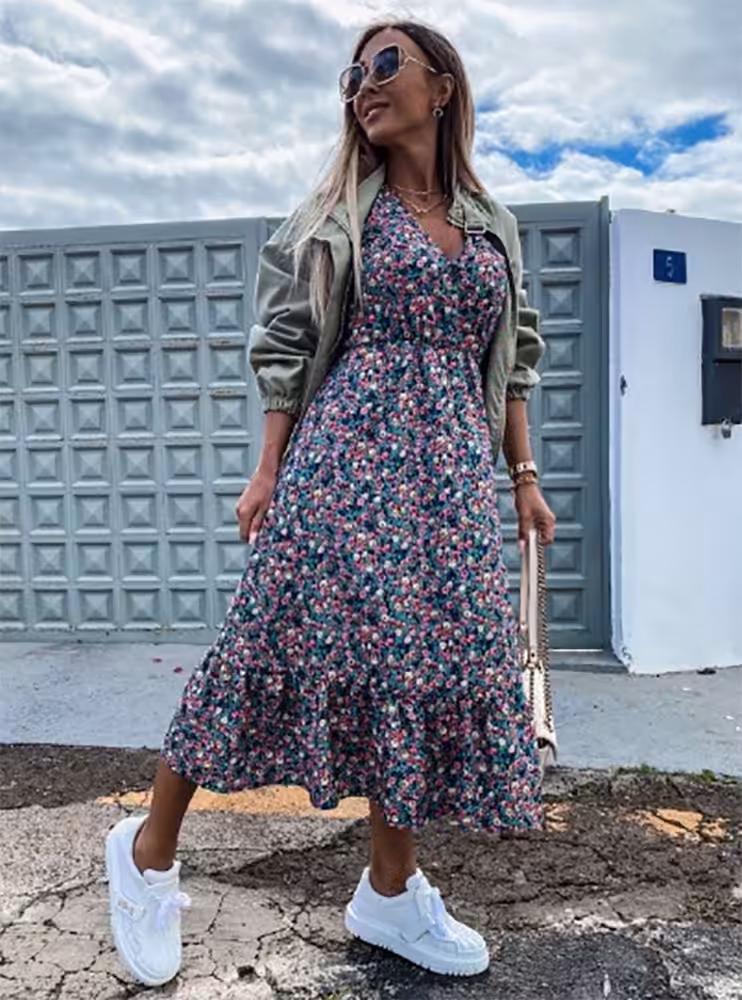 Purple Flower print dress