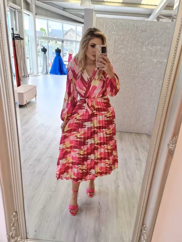 Lucy Long Puff Sleeve Split Leg Midi Dress Blue