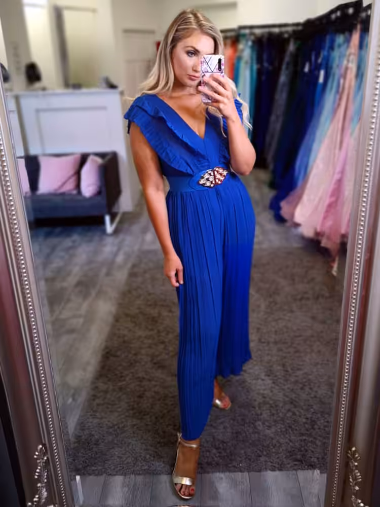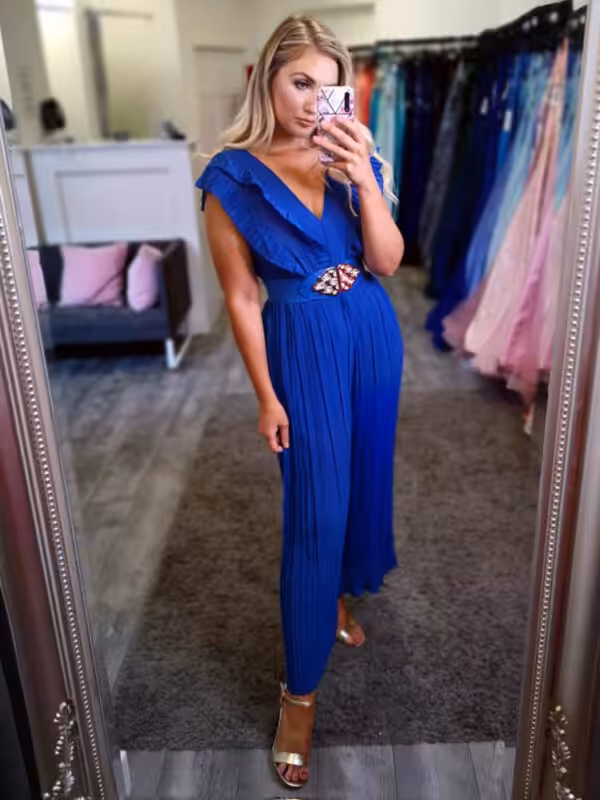 Be the first to review “Sarah Pleated Jumpsuit Royal Blue”