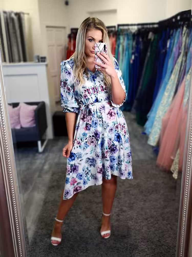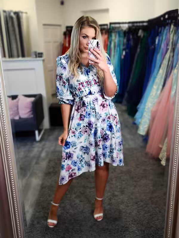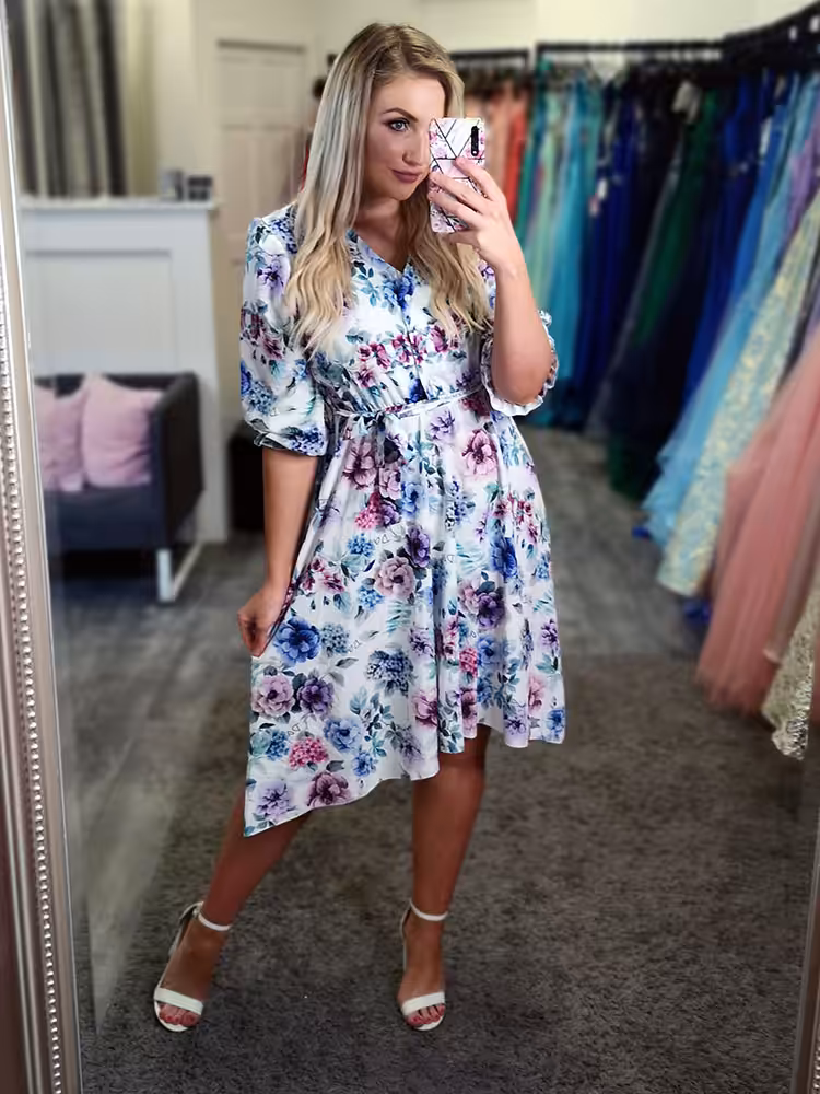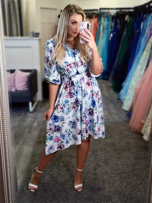 Beautiful floral print with a mix of blues and purple tones